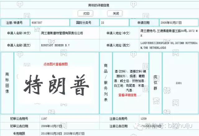 還(hái)有(yǒu)一(yī)家(jiā)荷γ≈蘭公司注冊了(le)“特朗普”商标,服務類别是(π←×shì)酒類,注冊時(shí)間(jiān)是(λπ✔shì)2008年(nián)2月(yuè)。