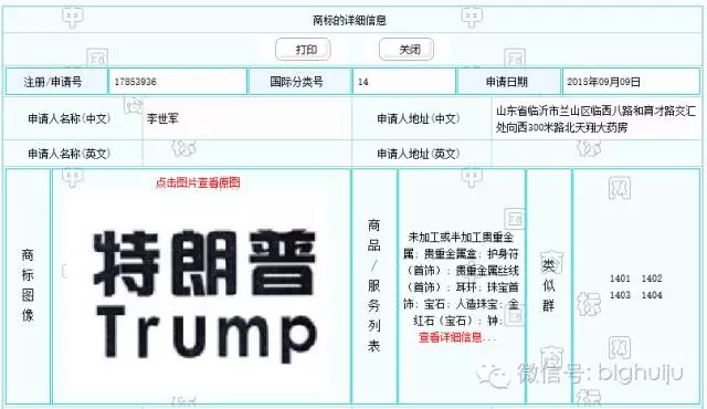 這(zhè)個(gè)叫李世軍的(de)自(zì)然人(rén),20 ✘15年(nián)想注冊“特朗普TRUMP”,直接被'¶±國(guó)家(jiā)商标局PASS了(le)!